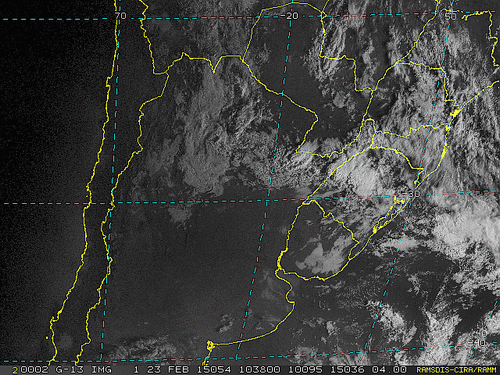 Imagem do satélite GOES 13/NOAA/EUA – Canal do Visível – dia 23/02/2015 – Hora local: 08:40 – Sul do Brasil.
