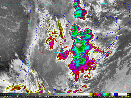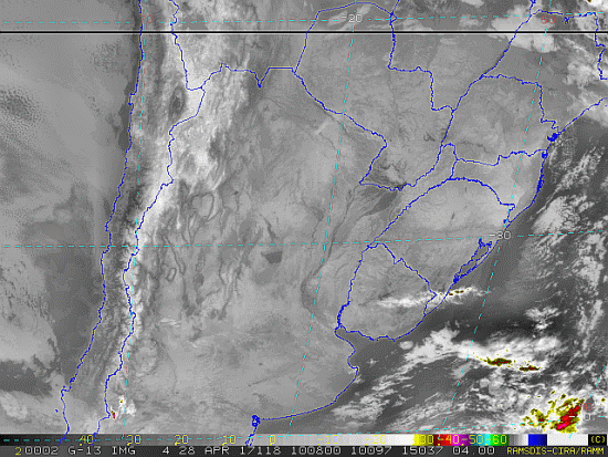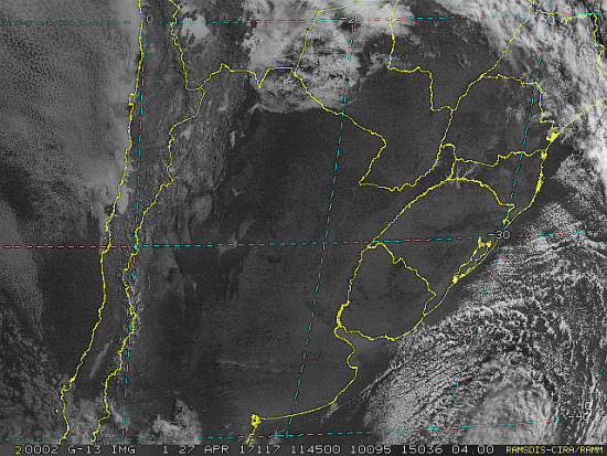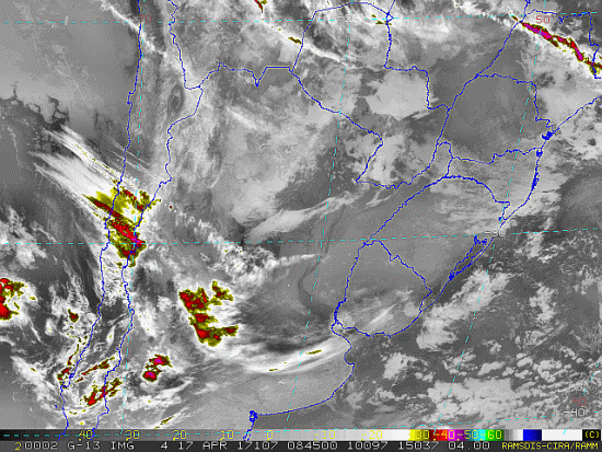 Observe a imagem de satélite pouquíssima nebulosidade no estado, somente nevoeiros nos fundos de vale e calhas de rios.