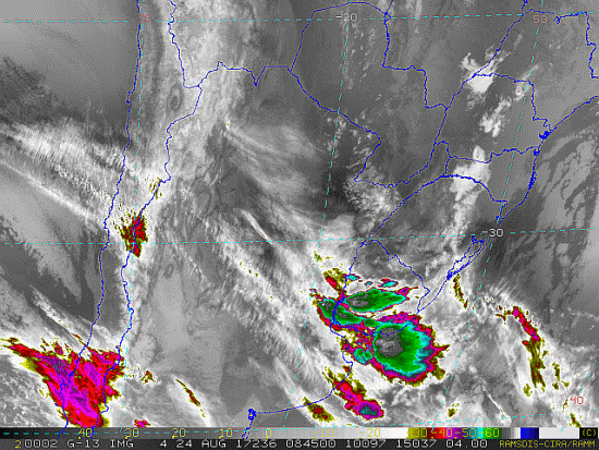 Observe a imagem de satélite desse início de dia nebulosidade presente em Santa Catarina, especialmente sobre planalto e meio oeste catarinense.