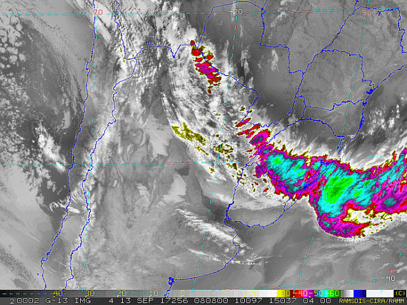 Observe a imagem de satélite desse início dia de dia áreas de instabilidade que formarão uma nova frente fria. A mesma passará por nossa região na sexta-feira. Assim teremos sol até o fim de semana acompanhado de nebulosidade, com momentos de maior e menor presença das nuvens. No fim de semana maior nebulosidade. Condições de chuva ocasional no domingo, nos outros dias, se ocorrer, somente chuviscos.