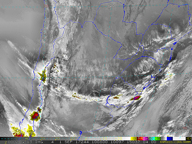 Hoje temos áreas de instabilidade atuando sobre o Rio Grande do Sul que formarão uma nova frente fria. Essa mesma frente se deslocará em direção a Santa Catarina na sexta-feira, entretanto trará chuva irregular para o estado. Até o fim de semana teremos a presença do sol, mas sempre acompanhado de nebulosidade. Condições de chuva fraca ocasional na noite de sábado e durante o domingo.
