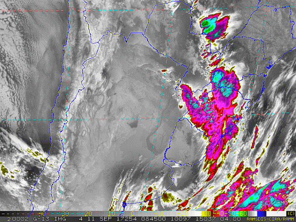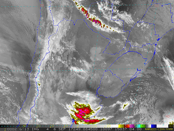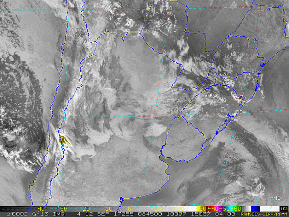 Observe a imagem de satélite desse início dia áreas de instabilidades sobre o estado gaúcho.