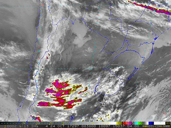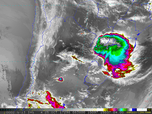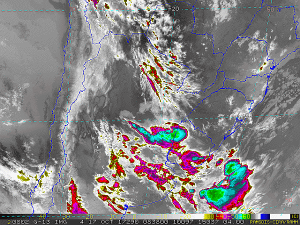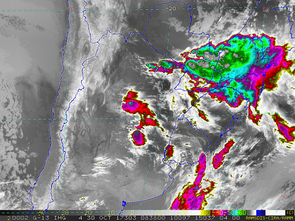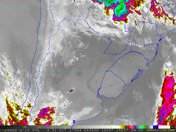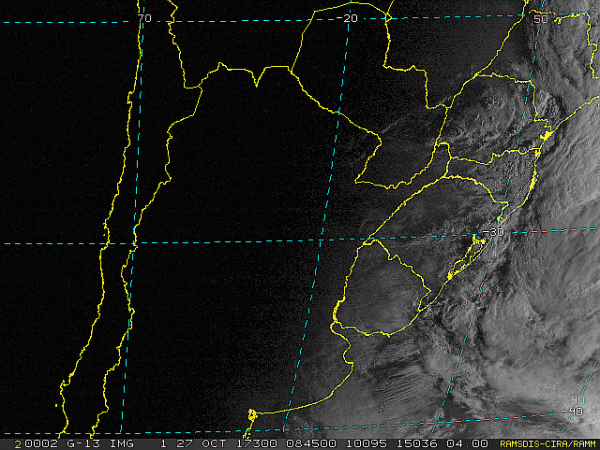 Hoje temos uma frente fria se deslocando pelo oceano e uma massa de ar mais seca e fria entrando pelo sul do estado. Na sexta-feira novas áreas de instabilidade atuarão no estado, e uma nova frente fria se deslocará por Santa Catarina no fim de semana. Observe as imagens de satélite desse início de manhã nebulosidade esparsa no território catarinense.