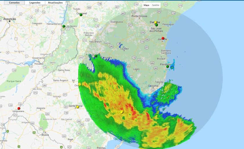 O comportamento da chuva continuará irregular na sua distribuição espacial. Nessa madrugada choveu em torno de 27 mm em Itapema, 55 mm em Camboriú e 49 mm em Balneário Camboriú. Em Itajaí os volumes de chuva variaram, dependendo da região, entre 4 a 66 mm.