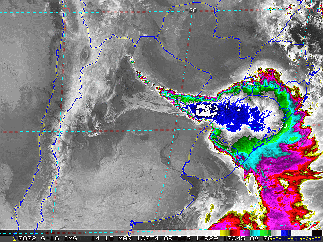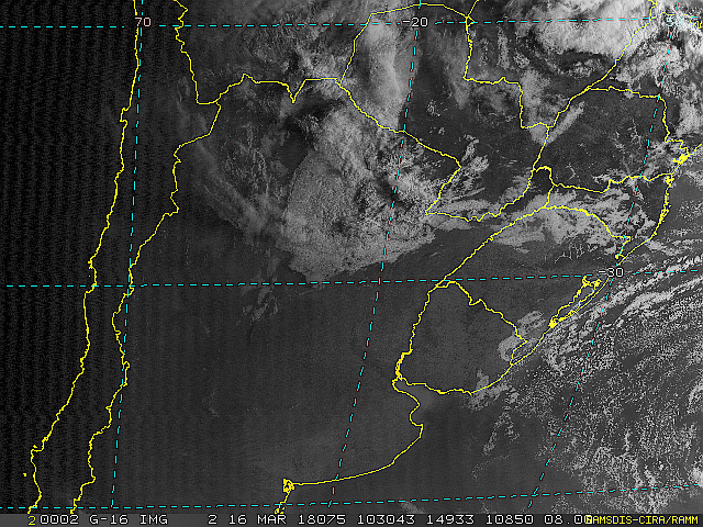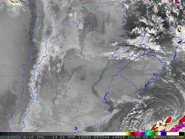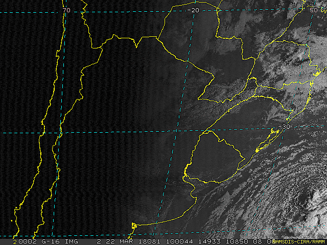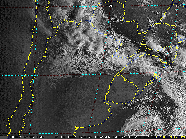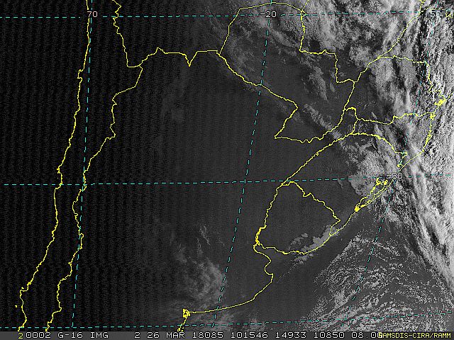 Poucas mudanças de tempo até o início da próxima semana devido a circulação marítima e áreas de instabilidades. No domingo essas áreas de instabilidade se intensificarão e formarão na segunda-feira, sobre o oceano, uma nova frente fria. Observe a imagem de satélite desse início de manhã muita nebulosidade no estado (cor mais branca e colorida).