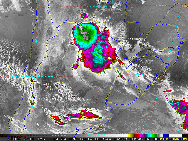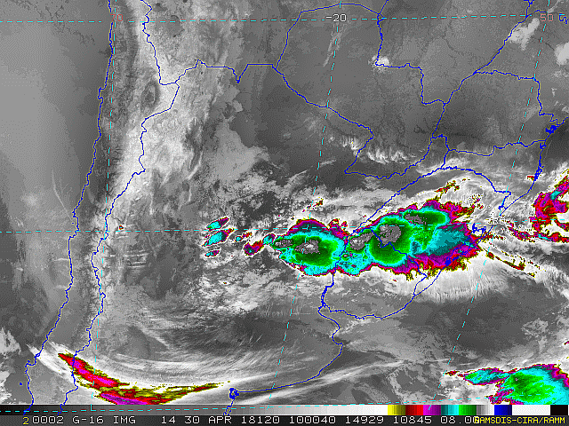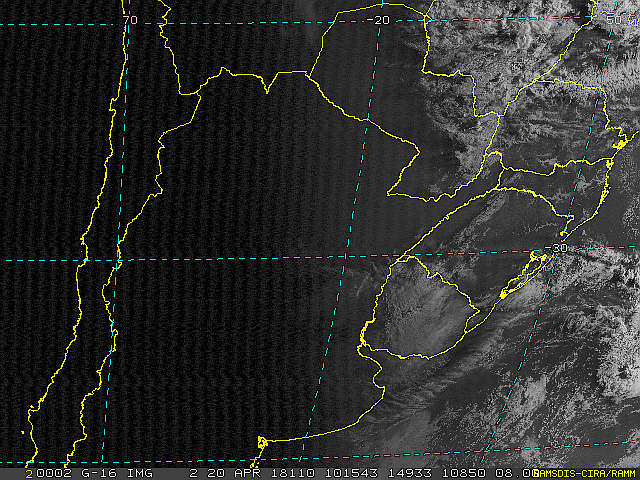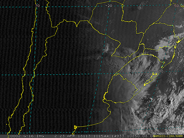 Uma frente fria se desloca pelo Rio Grande do Sul e passará em nossa região amanhã. Assim haverá mudanças no tempo para o feriado e parte da semana. Observe a imagem de satélite muita nebulosidade no Rio Grande do Sul e em Santa Catarina entre o planalto e o litoral.