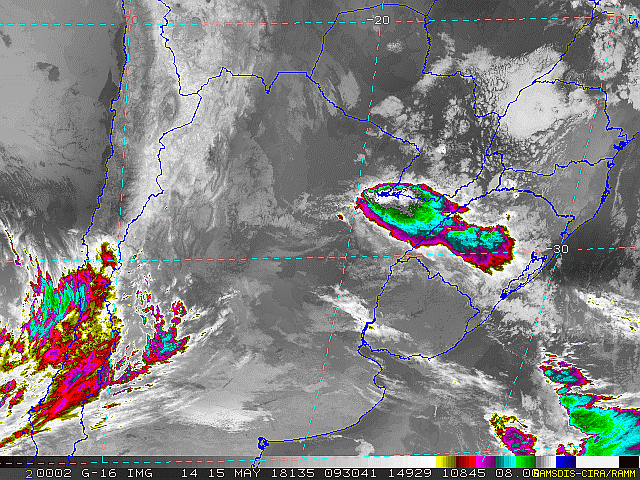Uma frente fria se desloca pelo estado gaúcho chegando a Santa Catarina à noite. Na sexta-feira fortes áreas de instabilidade avançarão pelo estado a partir do oeste e formarão nova frente fria. Assim o tempo ficará instável até sábado. Observe a imagem de satélite desse início de dia nebulosidade presente em parte do território catarinense.