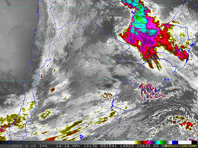 Uma frente fria se desloca em direção a região sudeste. Na sexta-feira novas áreas de instabilidade avançarão pelo interior e formarão uma nova frente fria. Observe a imagem de satélite desse início de dia muita nebulosidade sobre o estado.