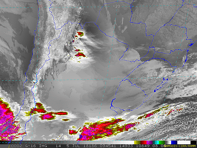 Hoje temos uma frente fria se deslocando pelo oceano entre o Rio Grande do Sul e Santa Catarina, bem como áreas de instabilidade avançando pelo interior do estado. Nessa madrugada e início de manhã as temperaturas ficaram entre 6/9°C na serra, entre 8/12°C na planície e litoral e somente no oeste ficou mais quente com 15/16°C. Observe a imagem de satélite desse início de manhã alguma nebulosidade entre a grande Florianópolis e litoral norte e no litoral sul.