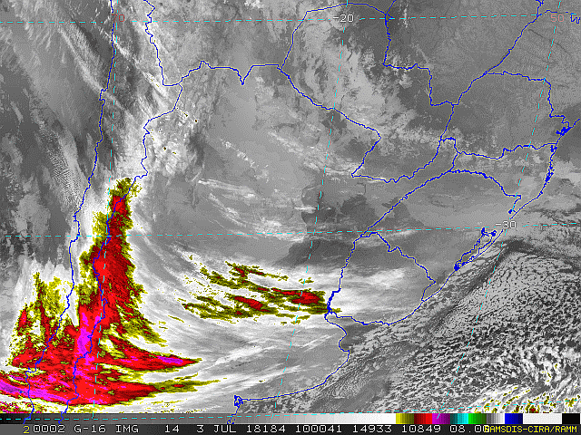 Áreas de instabilidades se intensificarão e formarão uma nova frente fria que passará por nossa região no domingo trazendo chuva a partir da tarde. Observe a imagem de satélite desse início de manhã nebulosidade presente sobre boa parte do sul do país.