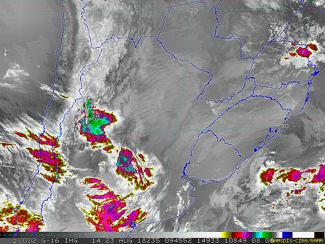 Observe a imagem de satélite desse início de manhã muita nebulosidade no Rio Grande do Sul, e já chegando ao oeste catarinense. Essa condição se deve a áreas de instabilidade avançando pelo interior e uma frente fria se deslocando pelo litoral. Essa frente fria passará por nossa região entre sábado e domingo, inclusive com sua intensificação, por causa de um sistema de baixa pressão. Assim, tempo instável para o fim de semana.