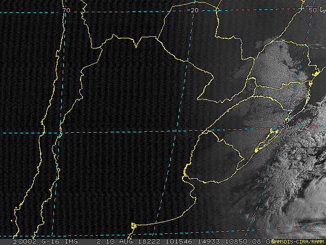 Observe a imagem de satélite desse início de manhã nebulosidade sobre o interior de Santa Catarina. A massa de ar polar já está em todo o estado com temperaturas menores que 8°C, com exceção do litoral onde as temperaturas estão entre 10 e 13°C. A mínima em Camboriú foi de 11,1°C e em Itajaí foi de 11,8°C. Rajadas fortes de vento desde ontem por causa de um ciclone extratropical com seu núcleo sobre o oceano na altura do Rio Grande do Sul. Em Mostardas no estado gaúcho tivemos rajadas próximas a 80 km/h. Aqui em Itajaí, rajadas de 49 km/h às 6 horas.