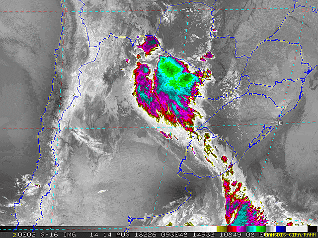 Observe a imagem de satélite desse início de manhã uma frente fria se deslocando entre o Uruguai e o Rio Grande do Sul. Essa frente fria não alterará as condições de tempo para nossa região. A partir de amanhã nova massa de ar polar chegará ao estado, permanecendo até o fim de semana. Na próxima segunda-feira uma nova frente fria avançará pelo estado trazendo condições de chuva.
