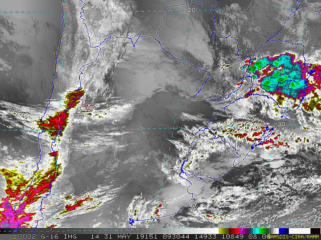 Hoje temos um sistema de baixa pressão sobre o oceano, em frente ao nosso estado, que se intensificou e formou uma nova frente fria. Depois um anticiclone na altura da Argentina, e mais áreas de instabilidade vindas do centro do país deixarão o tempo instável nesse fim de semana. Observe a imagem de satélite muitas nuvens sobre Santa Catarina.