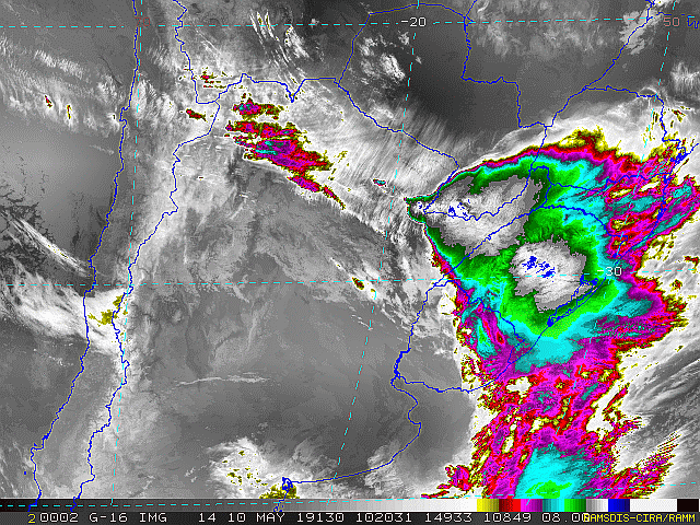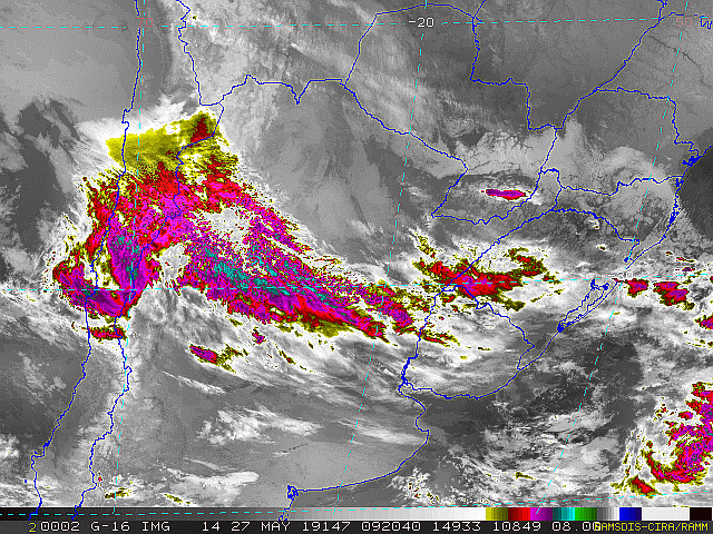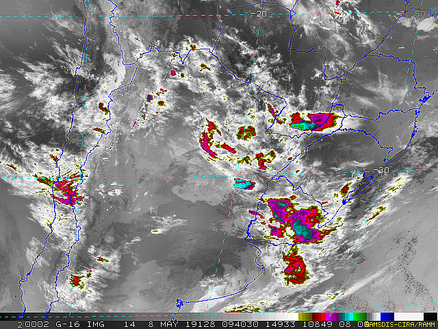 Hoje temos um sistema de baixa pressão sobre o oceano, em frente ao nosso estado, que se intensificou e formou uma nova frente fria. Depois um anticiclone na altura da Argentina, e mais áreas de instabilidade vindas do centro do país deixarão o tempo instável nesse fim de semana. Observe a imagem de satélite muitas nuvens sobre Santa Catarina.