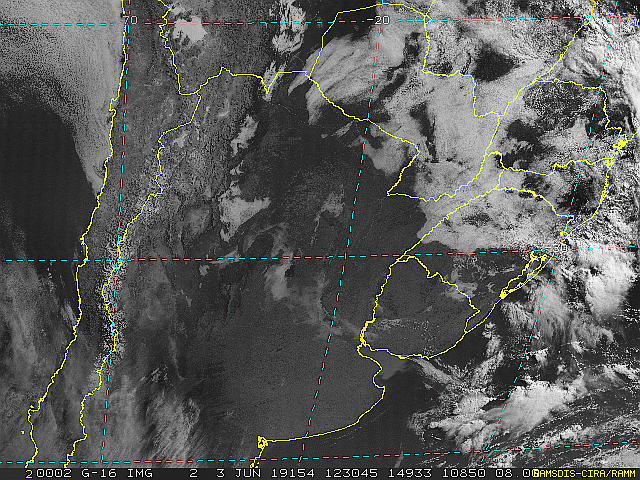 Uma massa de ar polar avança sobre o estado no decorrer do dia. Assim o tempo melhorará aos poucos com queda da temperatura. Essa mesma massa de ar atuará durante a semana, mas se movimentando em direção ao oceano. Assim teremos sol todos os dias com variação na cobertura de nuvens por causa da circulação marítima. Observe a imagem de satélite dessa manhã nebulosidade presente em Santa Catarina, mas já espaçada.
