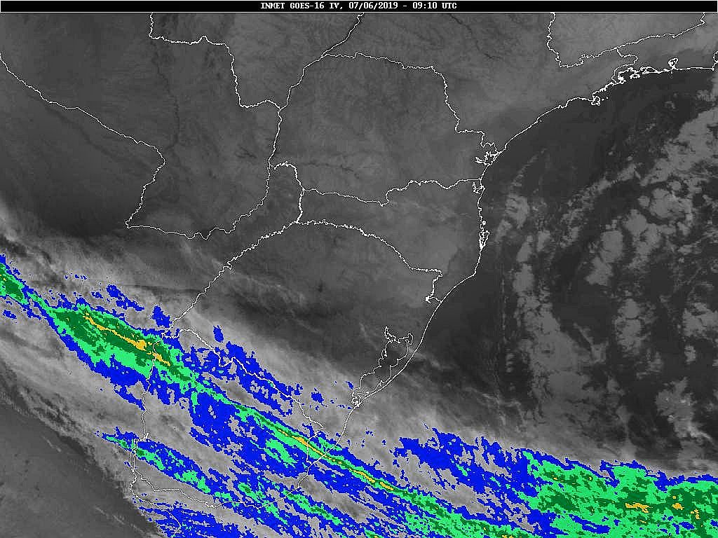 Observe a imagem de satélite desse início de dia pouca nebulosidade sobre o estado. Somente entre o Uruguai e o Rio Grande do Sul devido a frente fria.