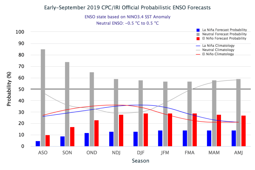 A principal característica da neutralidade climatológica é a variação (temporal e espacial), tanto para precipitação como para temperatura. Chove mais num lugar, menos noutro. Esfria bem, logo em seguida esquenta, ou vice-versa. Os modelos internacionais apontam tendências mais próximas. Para precipitação ficaria igual ou acima da média para os meses de outubro e novembro, e dentro da média histórica para dezembro. Quanto a temperatura igual ou acima da média para outubro, e dentro da média para novembro e dezembro. O Centro de Previsão de Tempo e Estudos Climáticos (CPTEC) do Instituto de Pesquisas Espaciais (INPE) coloca chuva e temperatura igual e acima da média histórica para o trimestre. O Instituto Nacional de Meteorologia (INMET) junto com a Universidade Federal de Pelotas (UFPel) no seu Boletim Climático para o Rio Grande do Sul, que cobre também nosso estado, indica chuva dentro da média para os meses de outubro e dezembro, e igual e abaixo da média para novembro. Quanto as temperaturas ficariam dentro da média histórica.