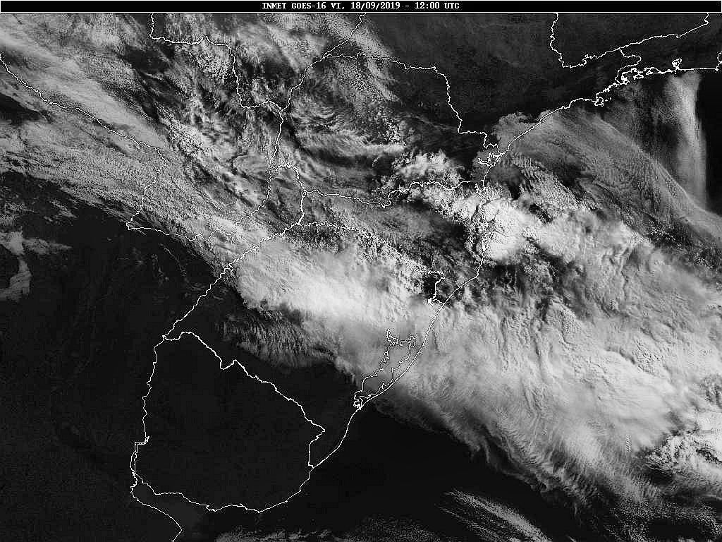 Imagem do satélite GOES 16/NOAA/EUA – Canal do Visível – dia 18/09/2019 – Hora local: 09:00 – Sul do Brasil. Fonte: Instituto Nacional de Meteorologia (INMET) modificado por LabClima/UNIVALI.
