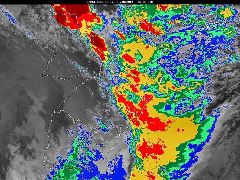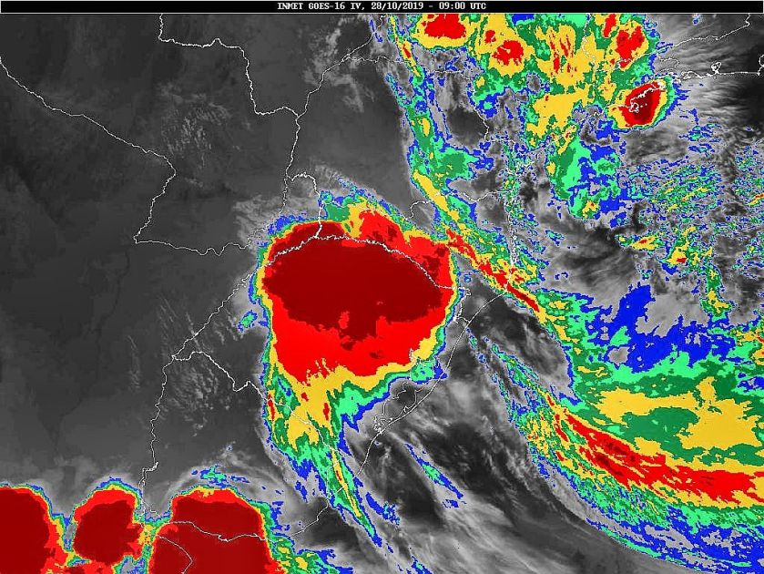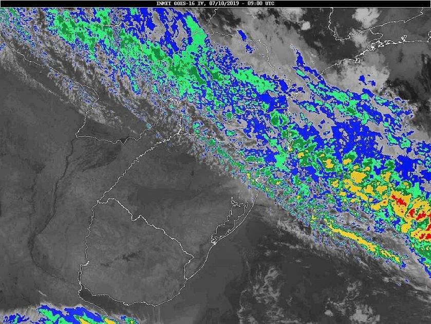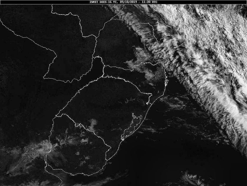 Observe a imagem de satélite dessa manhã poucas nuvens sobre o estado, mas fortes áreas de instabilidade sobre o Rio Grande do Sul. Ontem no deslocamento das áreas de instabilidade tivemos nuvens de prateleiras em parte do estado. Aqui em nossa região entre 16 e 18 horas tivemos rajadas de 62 km/h medidas numa estação meteorológica no bairro Itaipava. Amanhã, áreas de instabilidade associadas a uma nova frente fria se deslocarão em direção a Santa Catarina. No domingo nova frente fria passará pelo nosso estado. Assim tempo instável a partir de quinta-feira.
