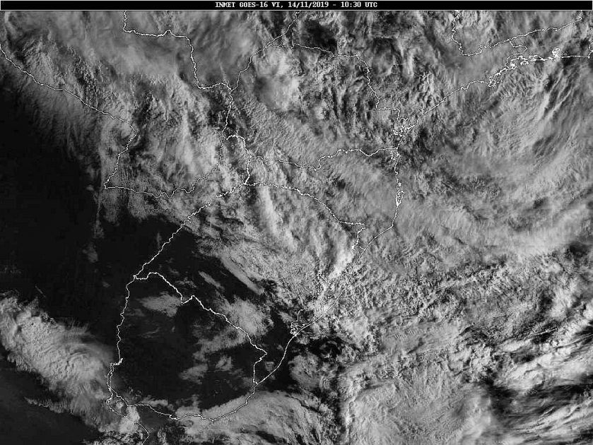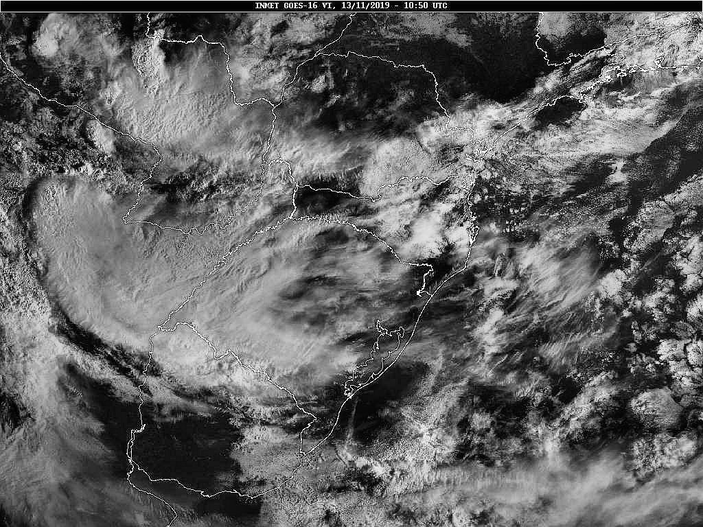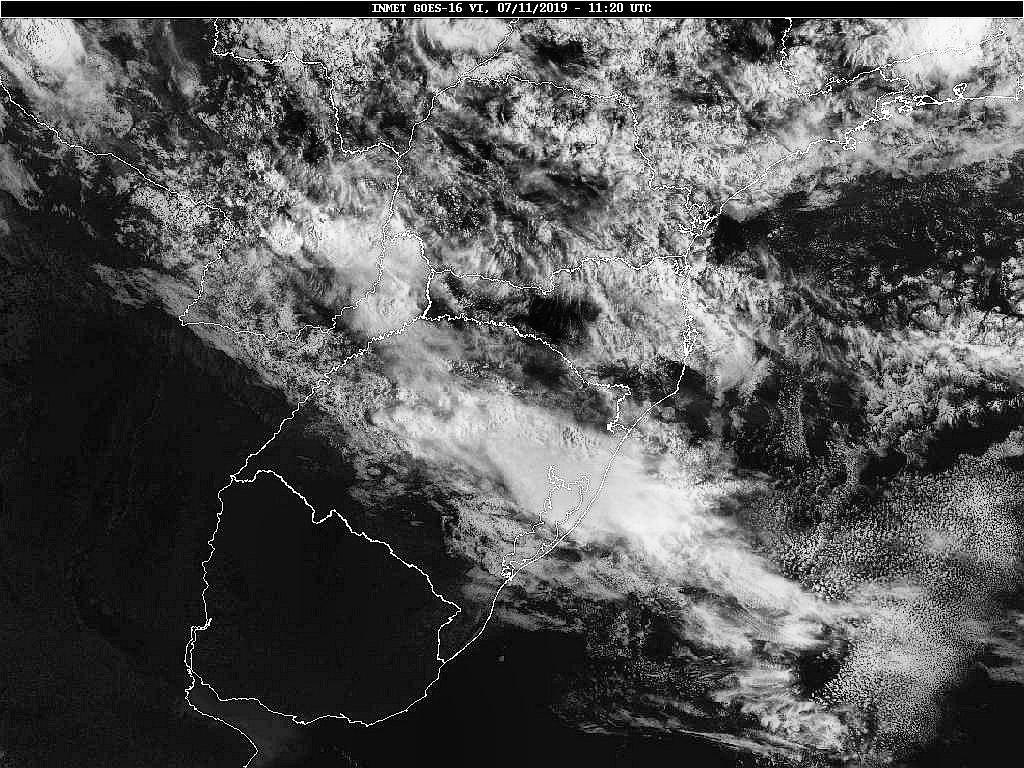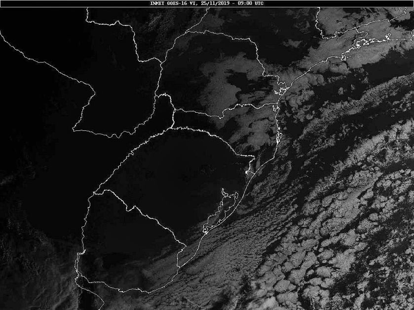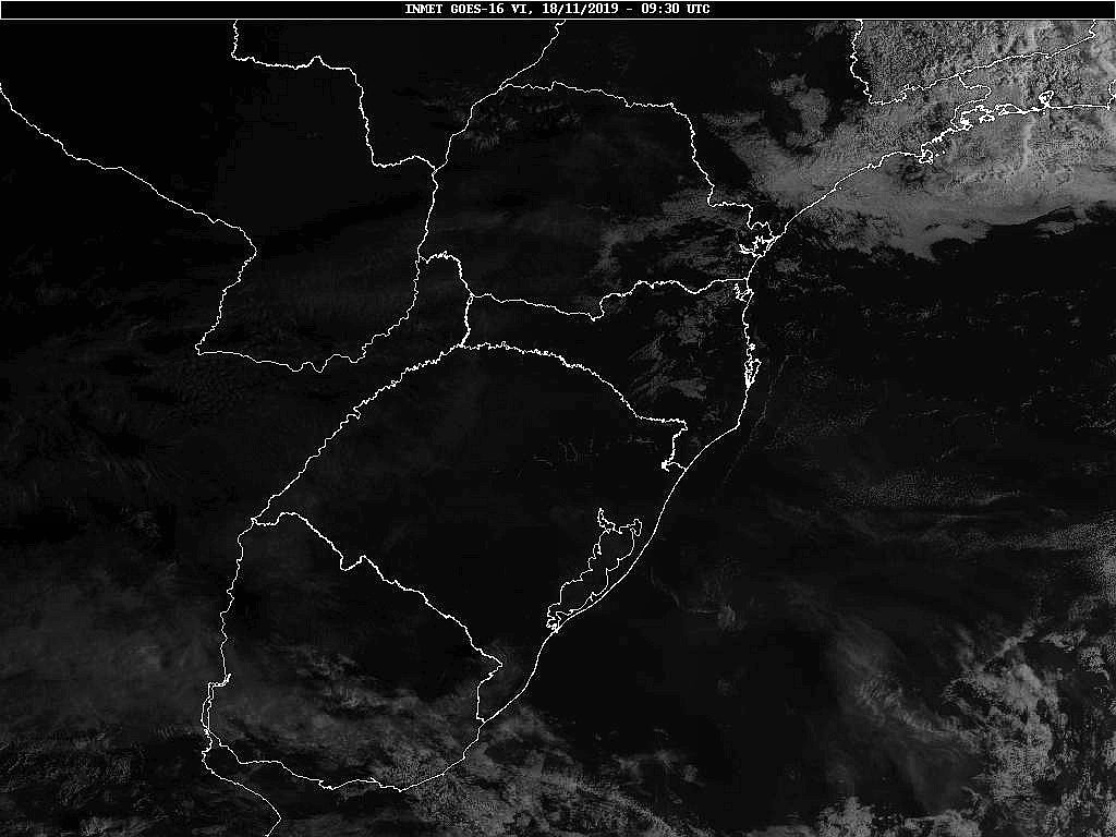 Hoje fez frio no estado e em nossa região. Em Bom Jardim da Serra fez 5,5°C. Aqui fez 13,9°C em Camboriú e 14,6°C em Itajaí. Isso se deve a presença de uma massa de ar polar que deixará o tempo estável no fim de semana. No domingo teremos pancadas de chuva à noite pela passagem de uma frente fria e pelo calor. Observe a imagem de satélite desse início de manhã poucas nuvens sobre Santa Catarina.