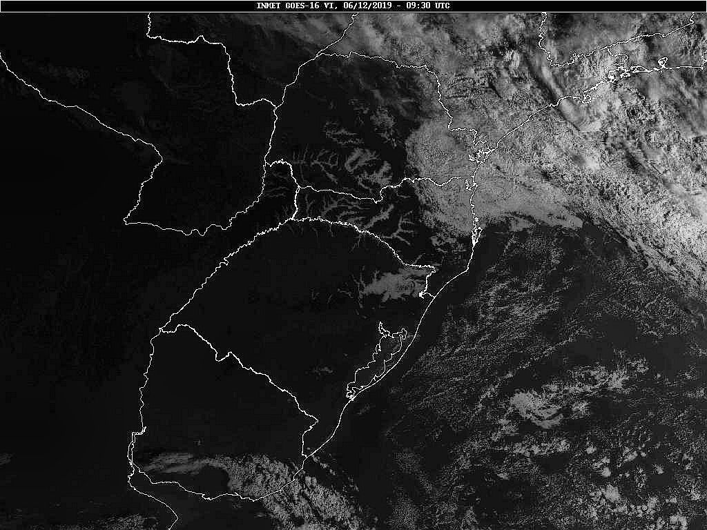 Uma massa de ar polar sobre o oceano vem influenciando o tempo nos últimos dias com calor e sem chuva. Na virada do ano uma frente fria avançará pelo estado trazendo instabilidade. Observe a imagem de satélite poucas nuvens sobre o estado.