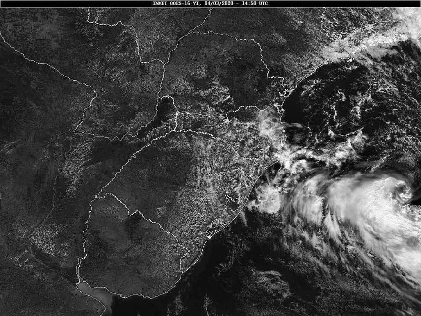 Hoje temos um sistema de baixa pressão sobre o oceano, na altura de Santa Catarina, e um anticiclone na altura da Argentina. Esses dois sistemas atuam sobre a circulação marítima, e assim, sobre a cobertura de nuvens. O fim de semana será de bons períodos de sol. Nos momentos de maior nebulosidade, alguma chance de chuva fraca e bem isolada, geralmente na madrugada ou noite. Observe a imagem de satélite desse início de manhã nebulosidade concentrada junto ao litoral centro-sul devido a circulação marítima.