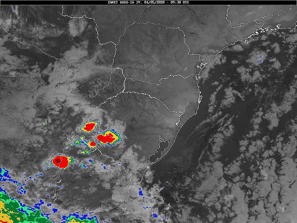 Observe a imagem de satélite uma frente fria se deslocando por Santa Catarina, e uma massa de ar polar sobre o estado gaúcho. Por enquanto a chuva se concentrou no oeste catarinense com volumes de até 50 mm em algumas cidades. Para o litoral pouca chuva ou nenhuma. Os modelos indicam volumes de até 10 mm para hoje, depois chuva somente para a metade da próxima semana. O tempo limpa a noite e esfria bem.