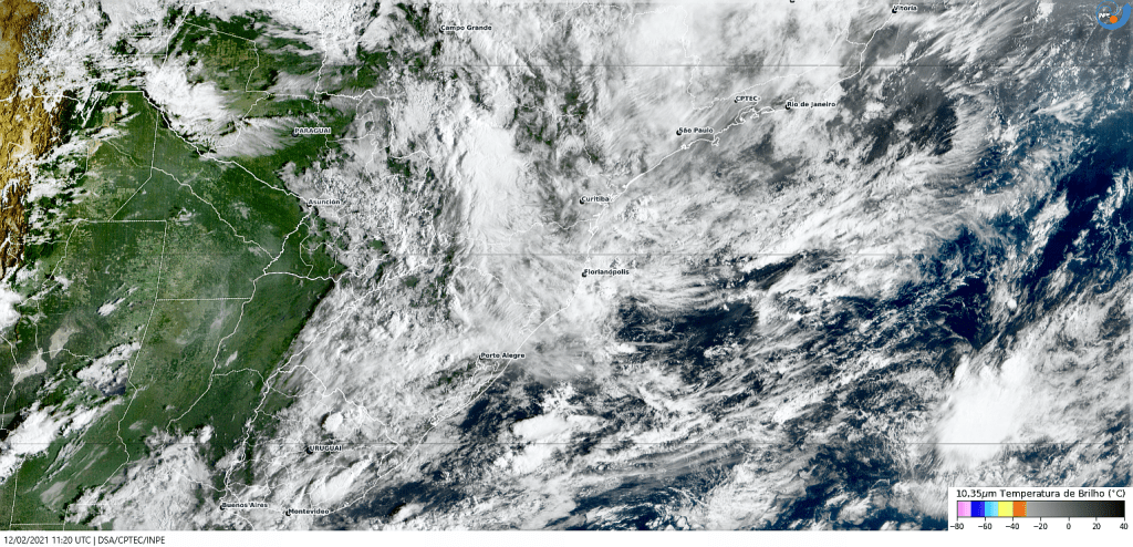 Essa semana continuaremos com a mistura de circulação marítima e áreas de instabilidade avançando pelo interior e litoral. Na sexta-feira essas áreas se intensificarão e formarão uma nova frente fria. Com essas condições teremos uma semana de muitas nuvens, chuva e trovoada isolada. Observe a imagem de satélite dessa noite muitas nuvens entre o planalto e o litoral.