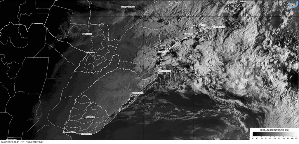 Uma mistura de circulação marítima e áreas de instabilidade avançando pelo interior, mas também pelo litoral, entre o Rio de janeiro e Santa Catarina deixará o tempo instável com chuva significativa para esse fim de semana. Dependendo do modelo os prognósticos são para volumes entre 65 a 120 mm, principalmente entre sábado e segunda-feira. Condições de trovoada e rajadas mais fortes. Assim recomenda-se atenção aos avisos da Defesa Civil. Observe a imagem de satélite desse início de manhã muitas nuvens entre o planalto e o litoral.