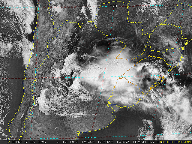 Primeiro o tempo para o fim de semana e natal. Hoje áreas de instabilidade vindas pelo interior formarão um sistema de baixa pressão. Esse sistema se intensificará e formará uma nova frente fria sobre o oceano na madrugada desse sábado. Assim essa sexta-feira terá sol acompanhado de nuvens com pancadas de chuva e trovoada a partir do final da tarde. Essa condição se repetirá no sábado. Para esses dois dias espera-se volumes maiores, que somados com as chuvas de quarta e quinta-feira, amenizará a estiagem ao menos para as festas de fim de ano. Para domingo, segunda e terça-feira teremos muitas nuvens, algumas aberturas de sol e chuva fraca ocasional. Faz calor hoje e amanhã com máximas de até 34°C. A partir de domingo o calor dará uma trégua. Teremos mínimas entre 19/22°C e máximas entre 24/26°C. Em nossas praias ondas de leste com até meio metro. Observe a imagem de satélite desse início de manhã fortes áreas de instabilidade sobre o Rio Grande do Sul.