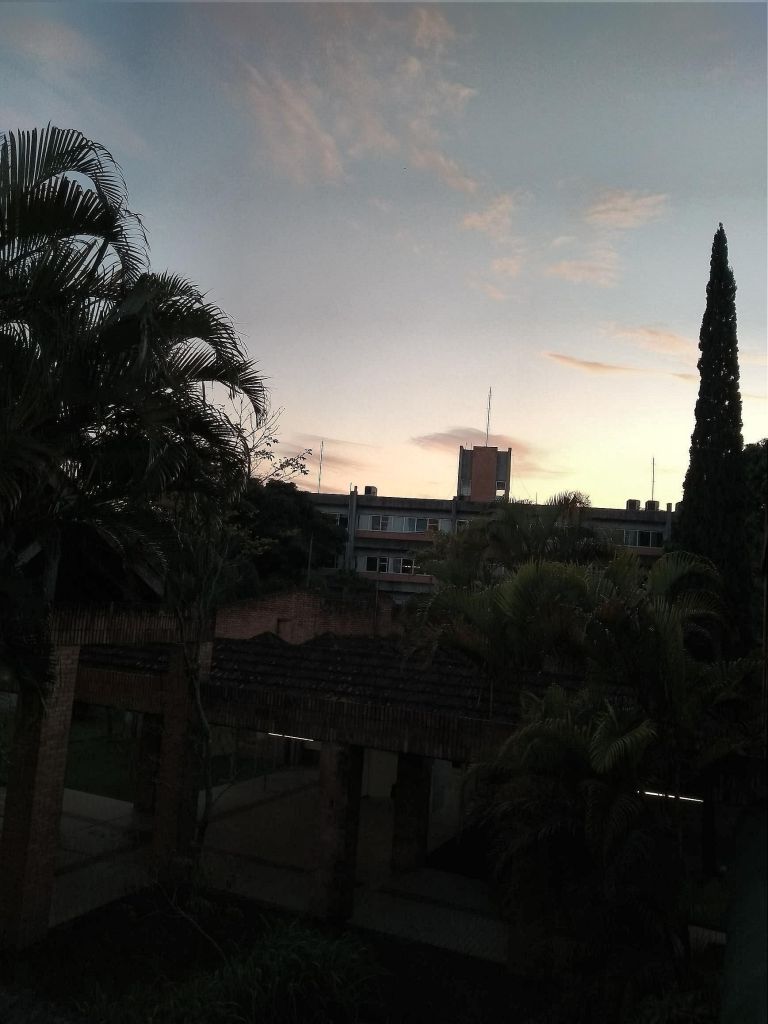 Observe as imagens do amanhecer em Itajaí. Temos mais nuvens a oeste, e mais sol a leste da cidade.