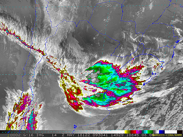 Observe a imagem de satélite uma frente fria se deslocando por Santa Catarina, e uma massa de ar polar sobre o estado gaúcho. Por enquanto a chuva se concentrou no oeste catarinense com volumes de até 50 mm em algumas cidades. Para o litoral pouca chuva ou nenhuma. Os modelos indicam volumes de até 10 mm para hoje, depois chuva somente para a metade da próxima semana. O tempo limpa a noite e esfria bem.