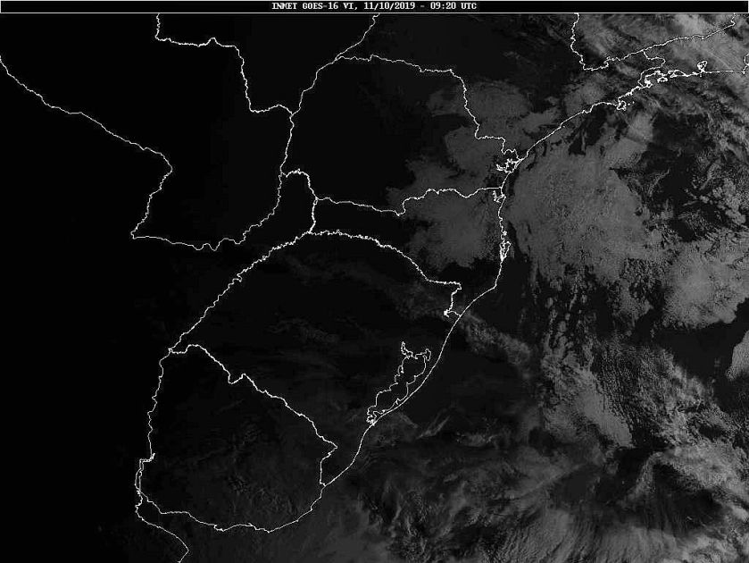 Hoje fez frio em nossa região com temperaturas mínimas de 6,9°C em Camboriú e 9,1°C em Itajaí. Menores temperaturas para esse mês. O recorde em julho foi de 0,2°C em 1982. Terminaremos o mês com chuva próxima da média histórica. Até hoje choveu 105 mm, e a média é de 109 mm. A massa de ar polar perderá a força e teremos uma elevação nas temperaturas durante a semana com máximas de até 30°C. A maioria dos modelos não apontam chuva para essa semana, nevoeiros sim, chuva não. Poucos indicam chuva fraca bem pontual no sábado e domingo. Para a próxima semana mudanças no tempo com chuva mais significativa. O indicativo de hoje é para algo entre 60 e 80 mm, principalmente na terça, quarta e quinta-feira. Vamos acompanhando. Observe a imagem de satélite dessa noite nebulosidade presente no planalto, litoral sul, no oceano e no sul do Rio Grande do Sul por causa de uma frente fria entre o estado gaúcho e o Uruguai.