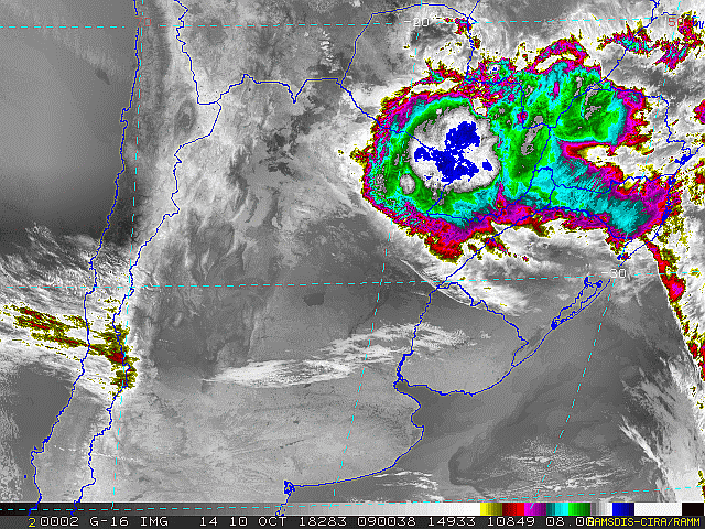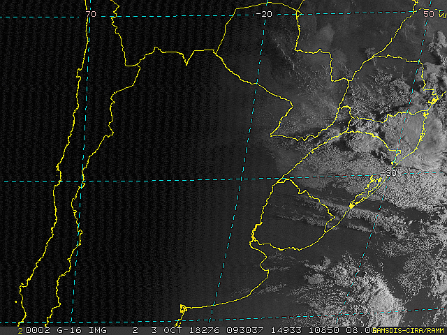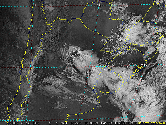 Observe a imagem de satélite desse início de manhã fortes áreas de instabilidade sobre a Argentina, Paraguai, oeste gaúcho, catarinense e paranaense. Essas áreas se fortalecerão e formarão uma nova frente fria que se deslocará pelo nosso estado nesse sábado. Condições de chuva, trovoada e ventos fortes.