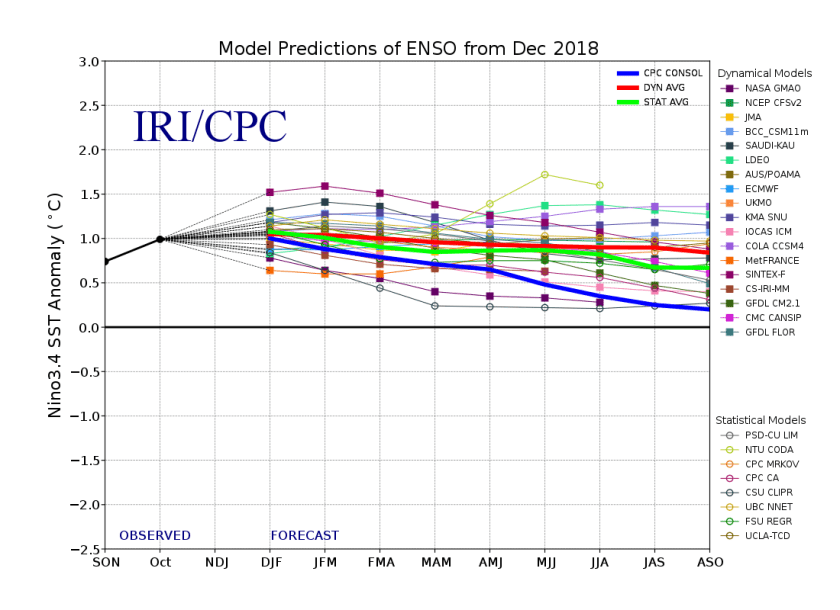 Figura 1: Previsão para anomalias no El Niño. Fonte: NCEP/NOAA – Center for Weather and Climate Prediction – National Weather Service – EUA.